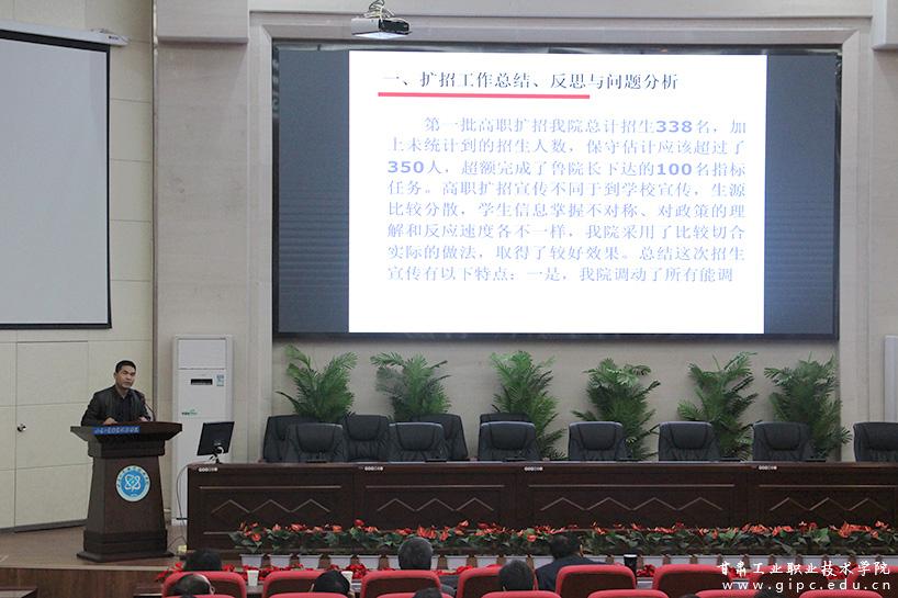 鲁挑建在总结讲话中指出,要认真贯彻落实杨声书记提出的有关要求,要充分认识高职扩招的重要意义,加强组织领导,强化部门协同,明确责任分工,狠抓贯彻落实。学校将按照国家标准,针对学生管理和教师工作量核算,制定出台相关的管理制度和办法,将国家政策落到实处。
