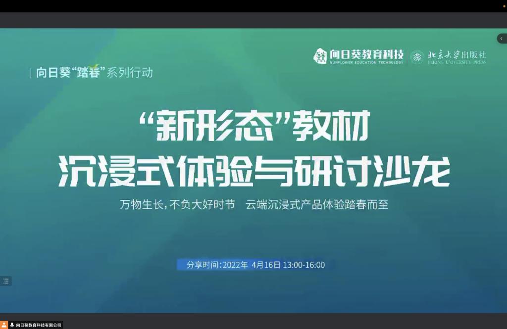 为提高学校首批“新形态”教材建设质量,助力教师掌握新形势下职业教育新型教材编写、建设的规范化要求,4月16日,学校教务处组织2022年职业教育新型教材建设项目各负责人,参加了由辽宁向日葵教育科技有限公司主办、北京大学出版社协办的“新形态”教材沉浸式体验与研讨沙龙。